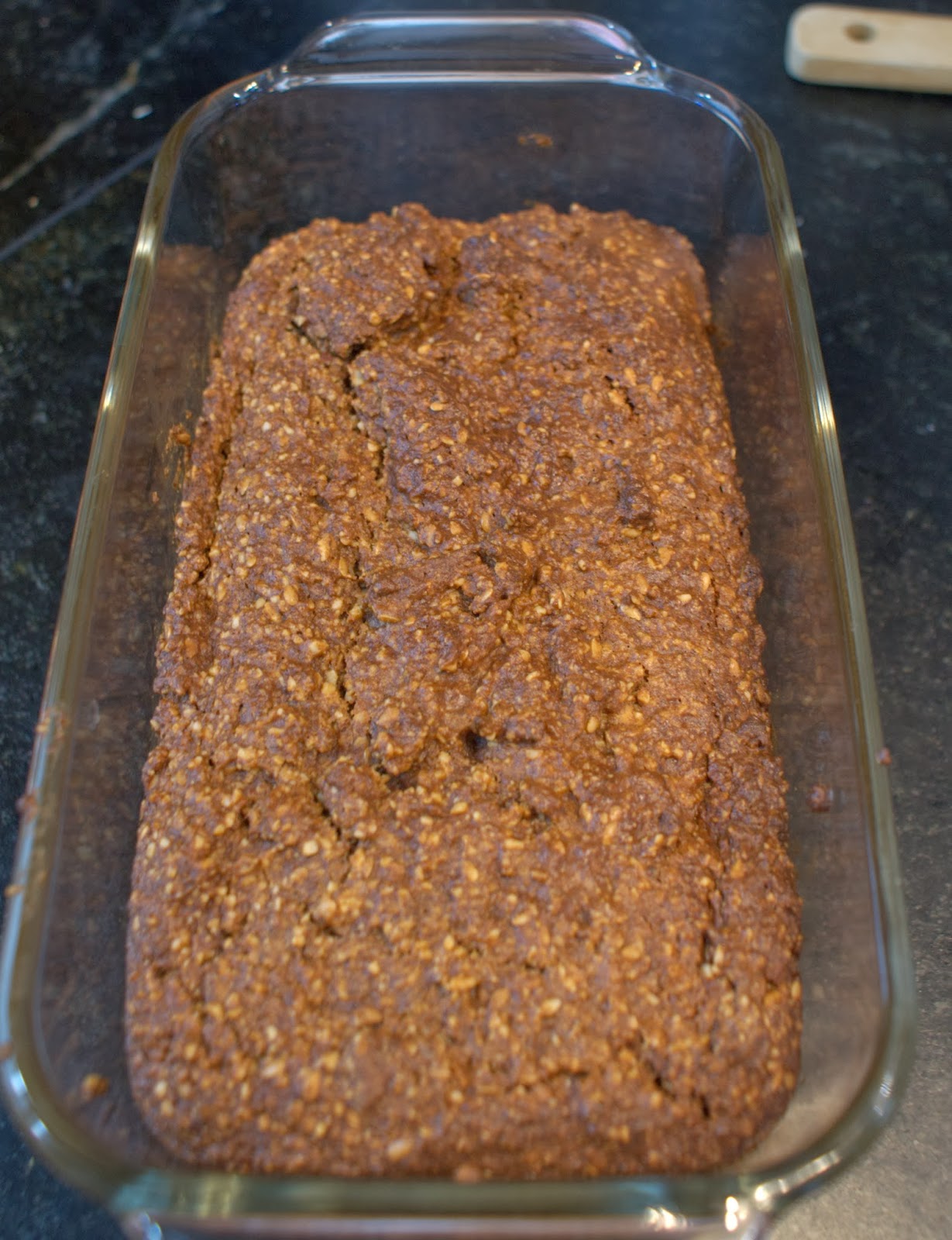 And here is the final product! Just started cracking and browning on the top and I knew it was good to go. If you're hankering for a bread with some staying power with your morning coffee, this one's a winner!